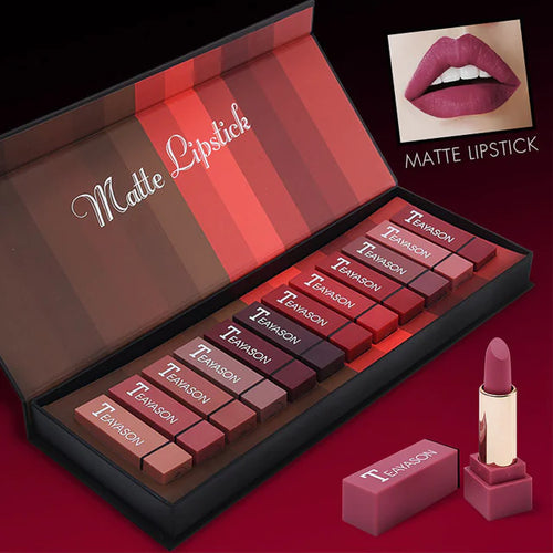 12 Color Lipstick Set - Matte Shades and Sexy Red